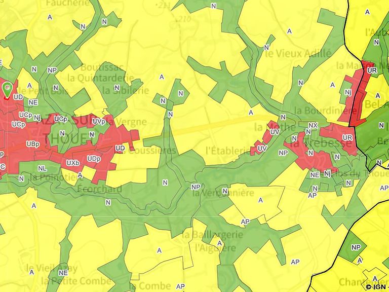 Pour connaître la zone et le règlement spécifique de la parcelle, consultez le geoportail de l'urbanisme. Si besoin, consultez le tutoriel utilisateur du géoportail.